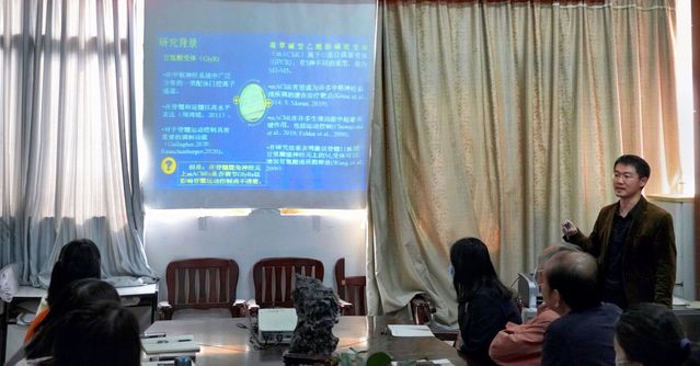 郑超博士以“单细胞膜片钳记录技术及其应用之一——毛果芸香碱对脊髓腹角神经元甘氨酸电流的作用”为题作学术报告,他根据自身科研经历,详细介绍了单细胞膜片钳记录技术及其应用,先后从膜片钳记录系统的设备购置、平台搭建、实验标本制备到记录模式选用都作了深入浅出的讲解,并着重强调了诸多实验细节,也分享了自己及其研究生的最新科研成果。随后,在省级学术与技术带头人汪萌芽教授的带领下,师生们围绕学术报告展开了热烈的研讨。