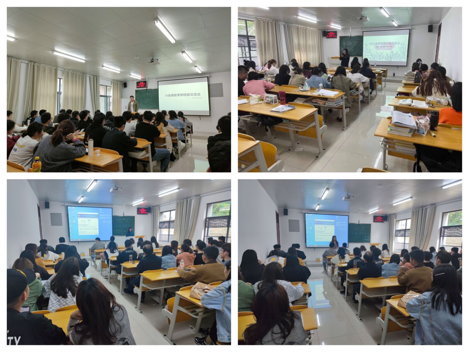 部分2021年考取研究生的同学为2018级全体员工按专业分场次分享备考、初试、复试相关经验,为2018级员工在院校选择、考试复试过程中提供建议参考,让同学在备考过程中少走弯路,节约时间专心备考,得到学弟学妹们的一致好评。
