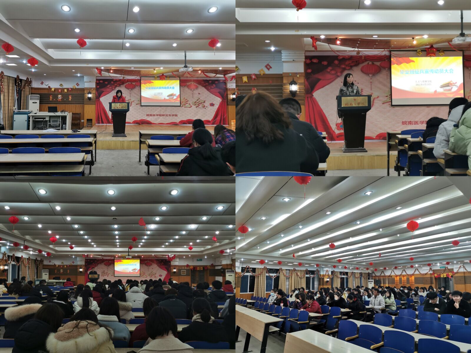 1月13日晚7点在赭麓校区报告厅举行2017级毕业生征兵宣传大会,公司党委书记窦弘、2017级辅导员徐德磊及2017级在校毕业生参加,会议还特别邀请了退伍士兵2018级保险专业程心慈同学。窦弘在会上说到参军入伍就是热血青年锤炼品质,树立信仰,实现伟大抱负的有效途径,同时鼓励各位毕业生不负青春,筑梦军营,牢牢握住钢枪,为国为家挥洒青春的热血和力量;接着,退伍士兵程心慈同学从亲身的经历出发,讲述了自己的军旅生活和学习经历,分享了自参军以来的成长和收获,鼓励大家把个人理想筑梦军营,书写无悔的青春篇章。