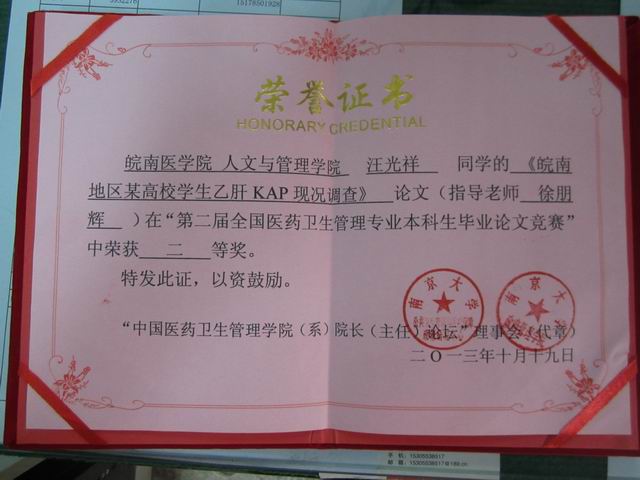 大会期间还举行了第二届全国医药卫生管理专业本科生毕业论文竞赛。由谈球吧选送的本科生毕业论文在第二届全国医药卫生管理专业本科生毕业论文竞赛获二等奖。